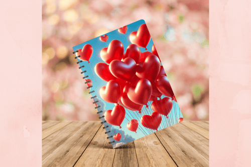 Notebook Design - Heart Shaped Balloons Pattern - Romantic Valentine's Day Notebook - Perfect for Sublimation - Instant Digital Download PNG - High-Quality 300 DPI.