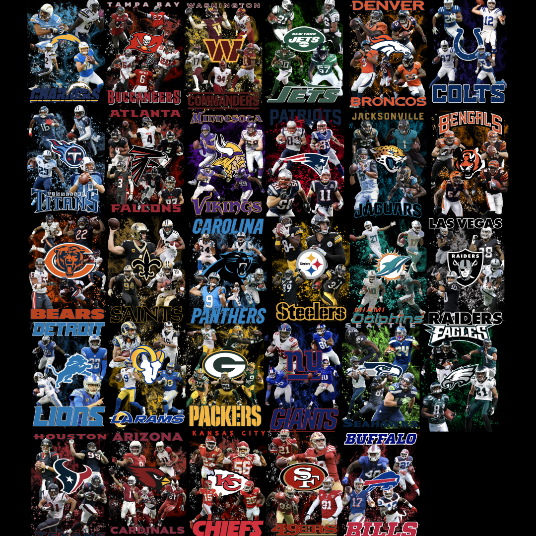 You will receive a digital package containing 32 NFL-inspired designs and 32 NFL product mockups. These mockups and designs are perfect for use in digital projects, including marketing, branding, and client presentations. Each design is crafted for professional-quality visualization and customization, suitable for personal or commercial use depending on the license you acquire.