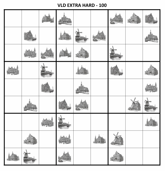 100 extra grote Sudoku picture puzzels in 4 niveaus.