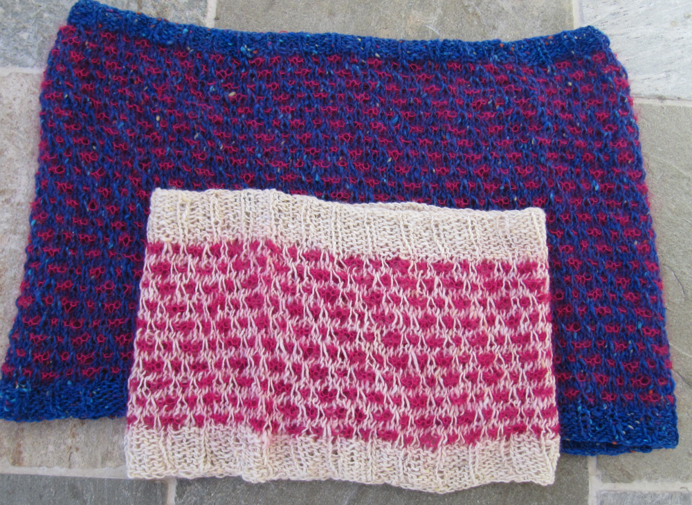 Dotty is knit in 4ply/fingering with a simple slip stitch pattern giving dots of silk-mohair colour.