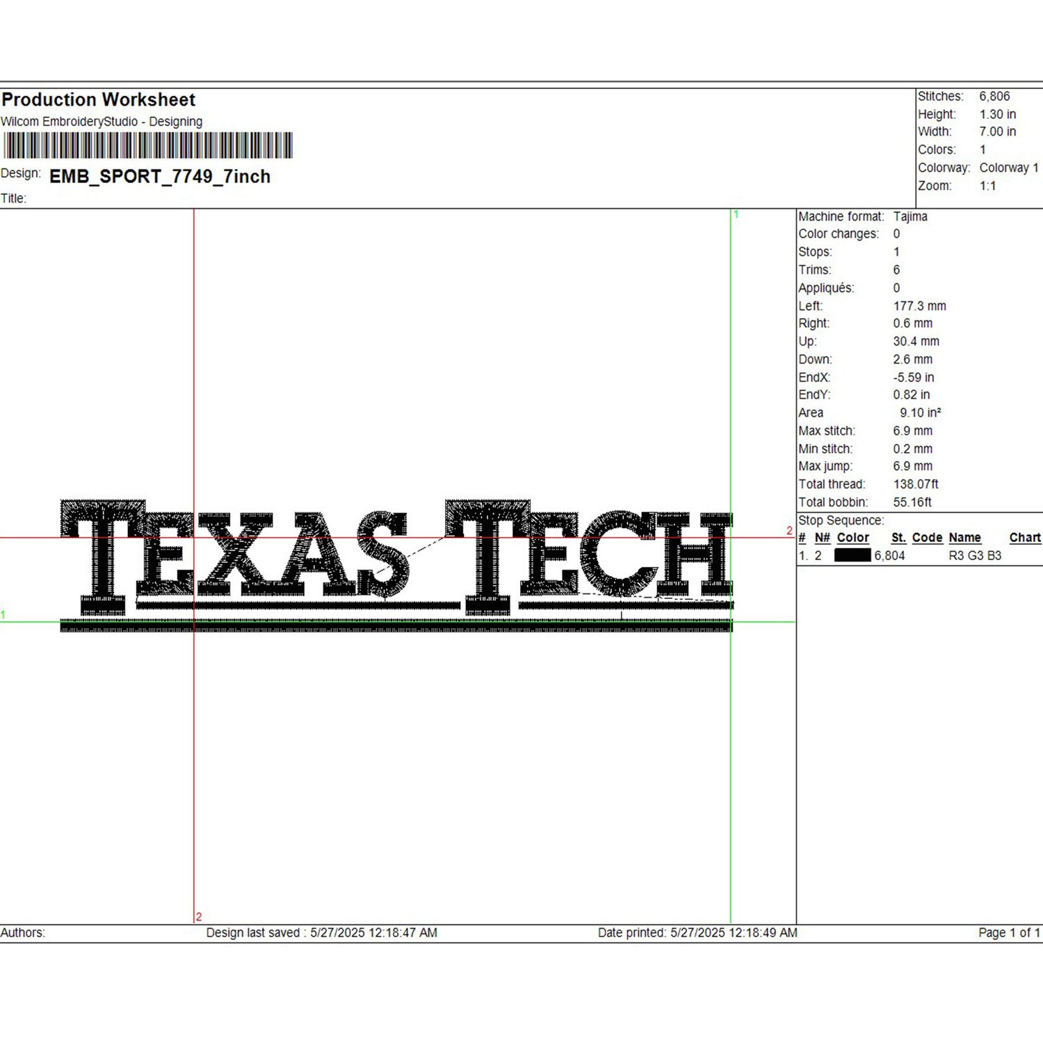 Texas Tech College Football Team Word Logo Embroidery Designs, NCAA Texas Tech Red Raiders Machine Embroidery Files, NCAA Logo embroidery designs, NCAA Texas Tech Logo, Digital Download
