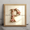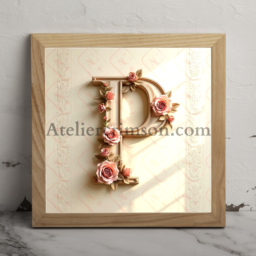 The letter P soft beige wood and flowers Download now this AI-generated image of an elegant, mid-century style character crafted from wood with a soft, neutral background with geometric pattern. Nostalgic and elegantly worn atmosphere.