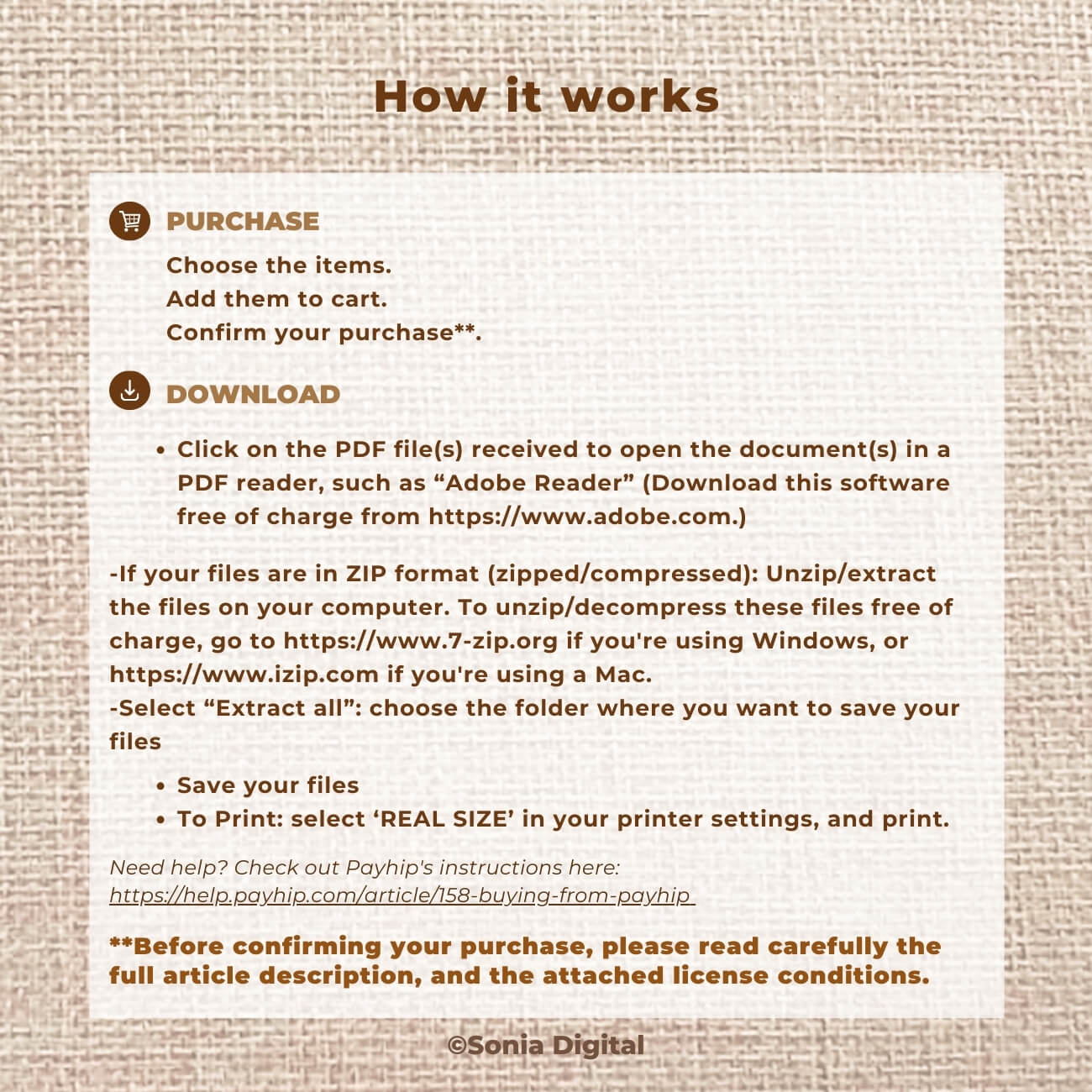 ▶️ Note: PDF ONLY: YOU Print. This is a DIGITAL PRODUCT and downloading is instantaneous. NO printed / physical product will be sent/shipped to you.