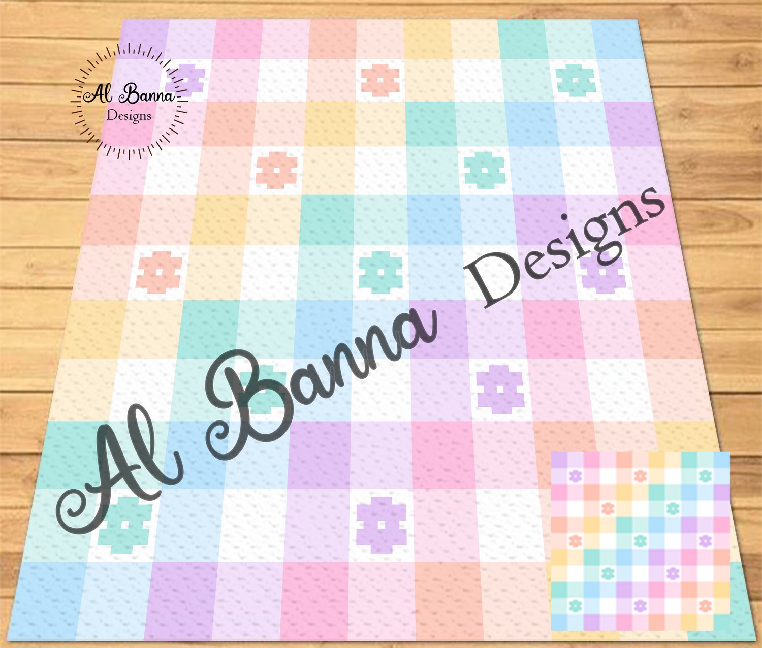 Pattern includes a full graph on single page, enlarged graph printed on multiple pages along with row by row written instructions and also in colored blocks. Block count for each row is written at the end of the row. Please note that the sample image is not a photo of a finished blanket! It is only a digitally-edited image meant to showcase the product.
