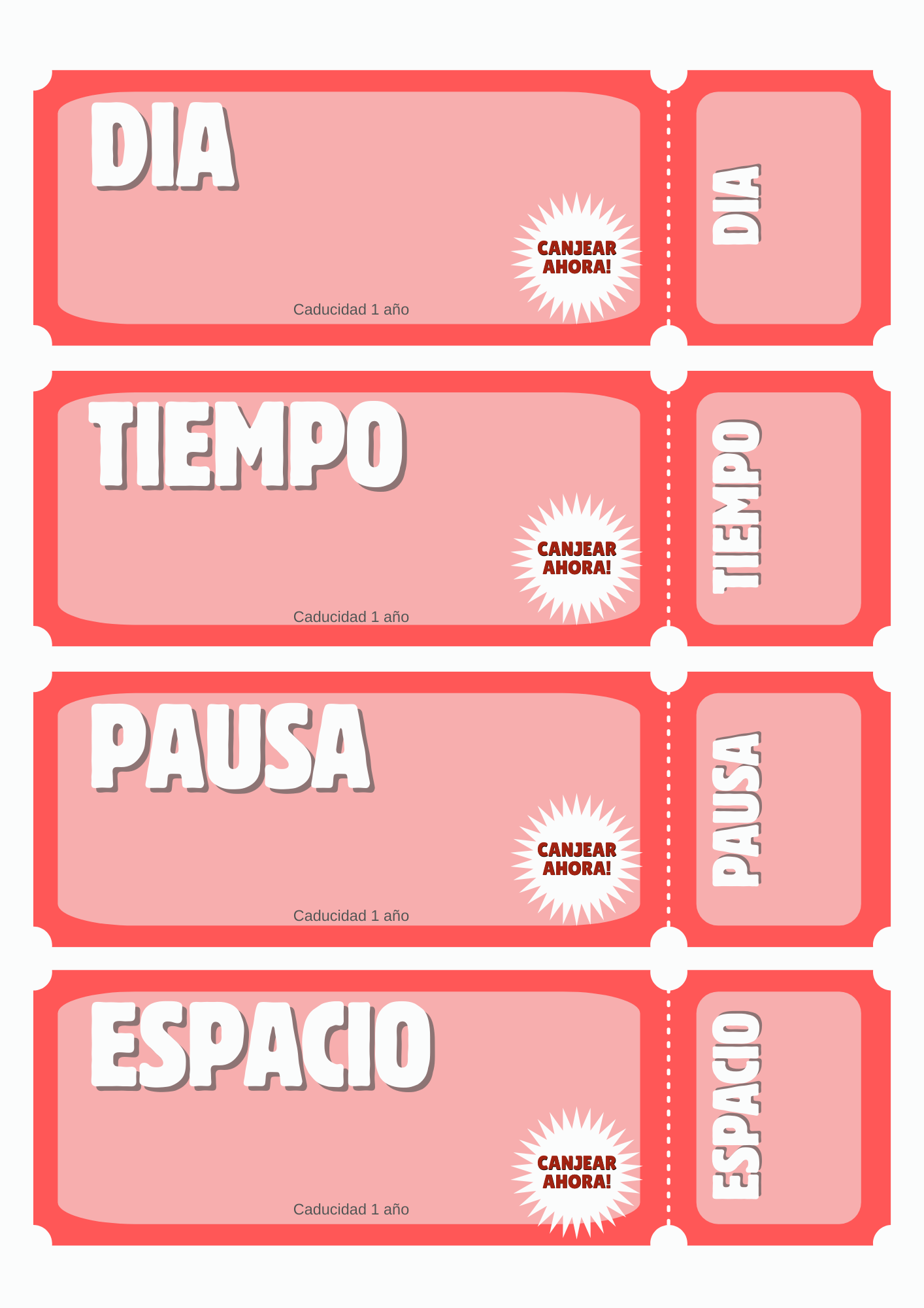 -6 cupones con título en blanco + 2 vacíos, para personalizar con tus propias ideas.