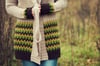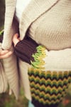 Attaboy Cardigan is worked from top to bottom with raglan sleeve shaping. The upper body is worked in Stockinette stitch in the main color, then the 3 additional colors are introduced below the waist in the False Flame stitch, a pattern which gives the illusion of complicated colorwork without actually carrying yarn anywhere! What could be simpler or more relaxing to knit? Once you finish the body, the ribbed front bands and shawl collar are picked up and shaped with short rows, then finally the sleeves are worked, in the round, and finished with an abbreviated False Flame pattern on long cuffs. If you like, work up the ribbed belt to fasten the cardigan.