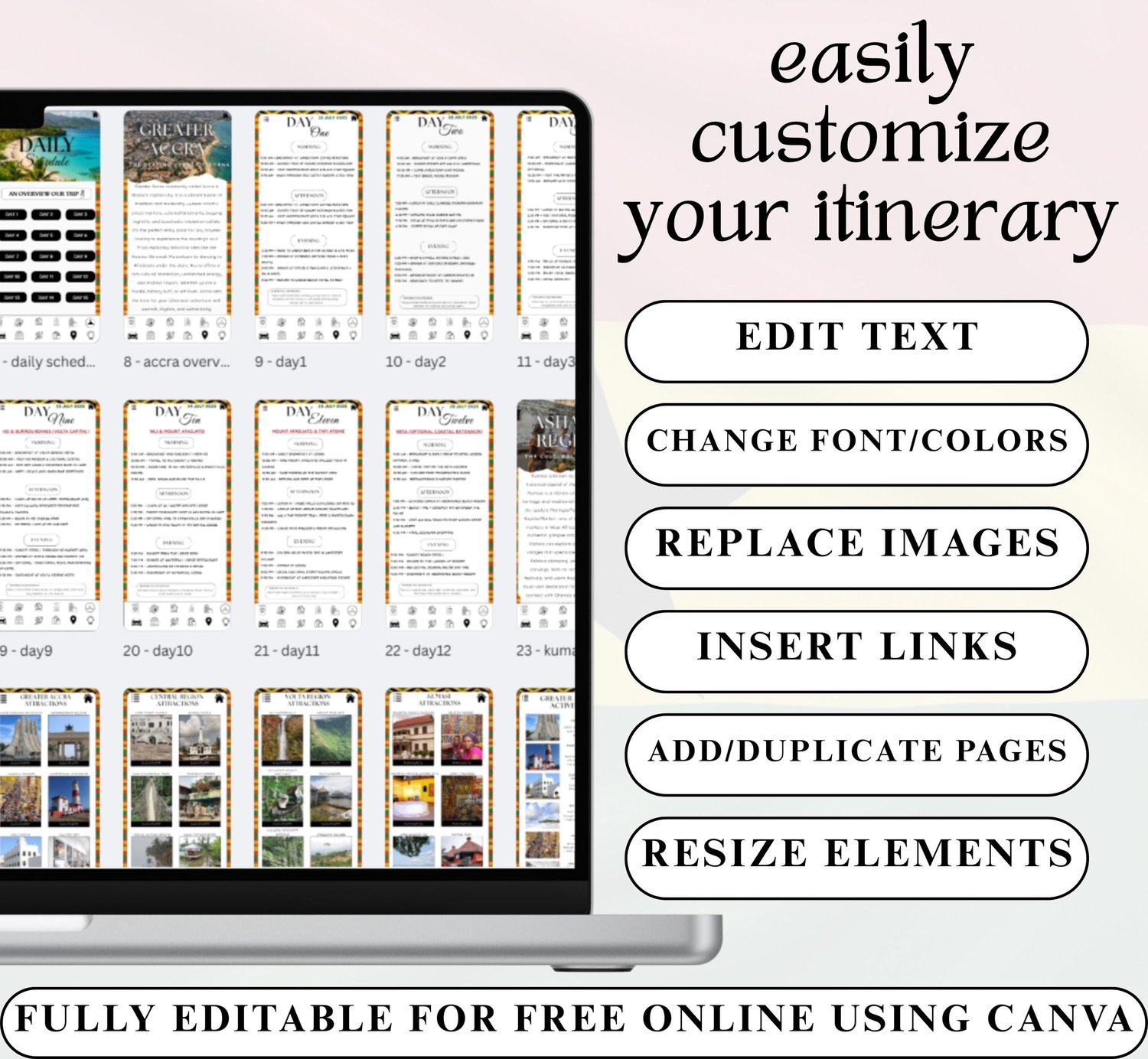 Ghana Itinerary Template, Digital Mobile Travel Guide, Editable Ghana Holiday Trip Planner, Africa Trip Travel Organizer, Accra Ghana, Canva