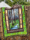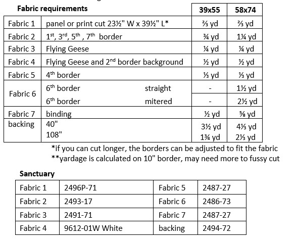 The geese are flying up and away in the two side borders. You could make more, or less, Flying Geese, make the geese and squares scrappy or make the geese all the same. Deb Tucker’s Wing Clipper® will help you with getting perfect points on the Flying Geese, or use the no-waste method. The length of the quilt will depend on the size of the panel.