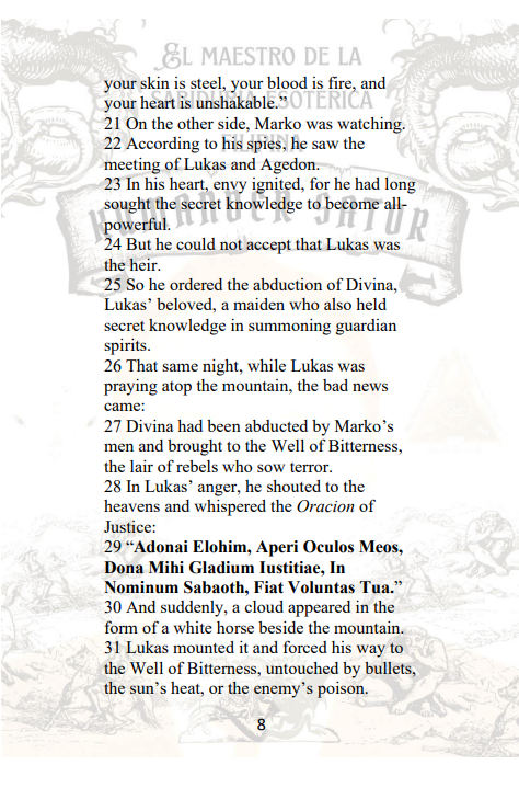 In an era of hidden powers and ancient oraciones, two opposing factions—one led by the righteous Lukas under the guidance of the wise Maestro Agedon, and the other by the ruthless rebel Marko with his dark spiritualist Tamarak—clash in a brutal struggle for domination. Through the secret knowledge of angelic and infernal forces, both sides wield esoteric powers beyond comprehension, engaging in battles that transcend the physical and enter the spiritual realms.