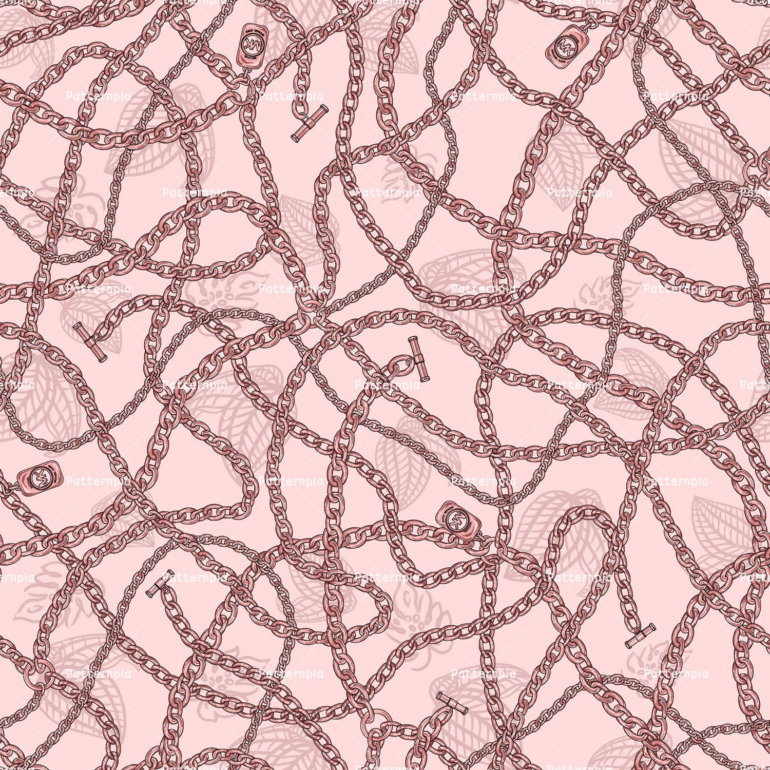 Intricate rose gold chains with subtle leaf motifs on pink.