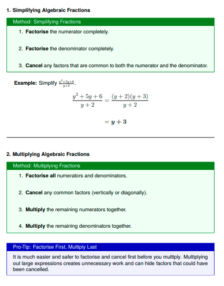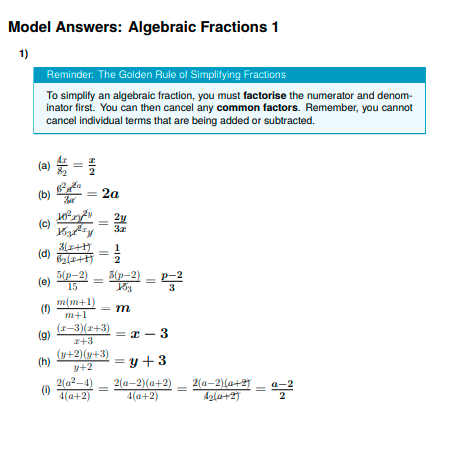 IGCSE Higher Maths: Algebraic Fractions 1 (Worksheet & Model Answers)