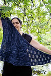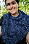 This pattern is the Snowstorm Shawl knit out of 2 skeins of a Worsted Weight yarn with a different take on triangular shawl shaping as well as some satisfying drop stitch texture. Please note the sample size took all of the yarn from the two skeins. If you are worried about yardage you can also use two skeins of a heavy DK weight yarn.