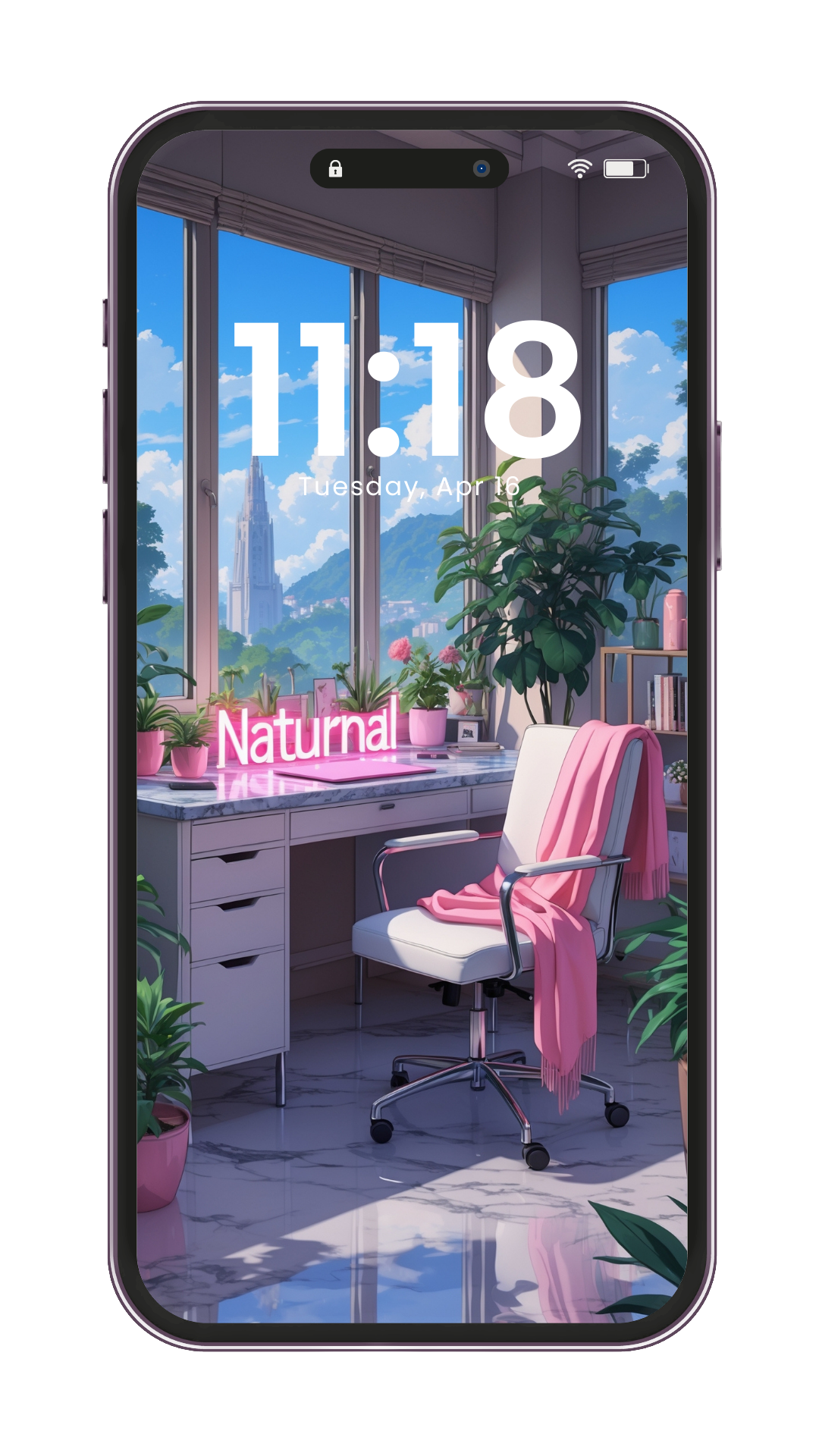 Modernize your phone wallpaper with a Naturnal home office space decorated with marble and gold features. Liven up your phone and mood.