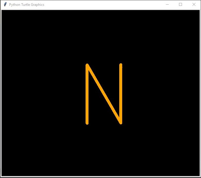 This Python file contains code to draw the letter "N" using the Turtle graphics library. Turtle graphics is a popular way for introducing programming to kids and beginners because it provides a visual way to understand how code works.