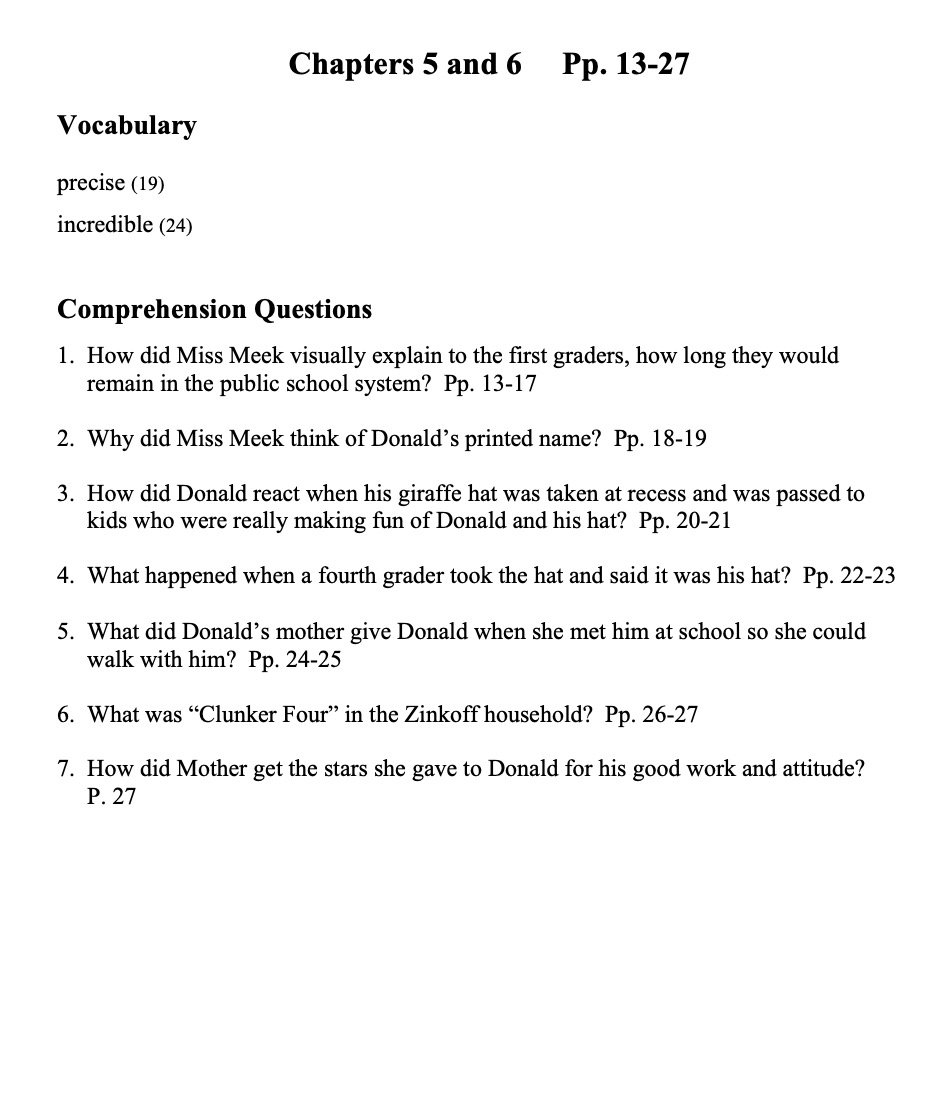 Several reading comprehension question for each chapter