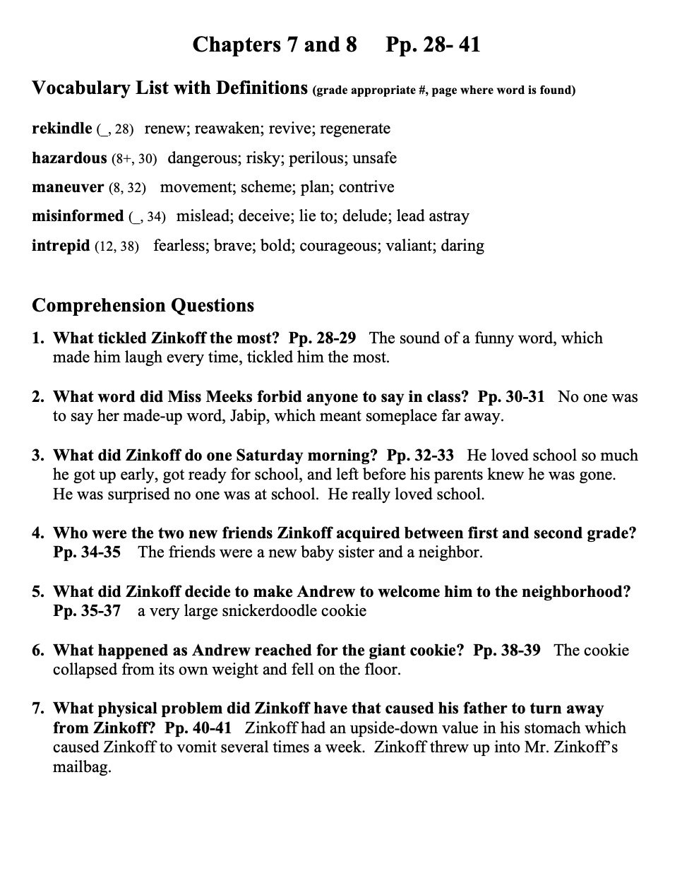 Several reading comprehension questions for each chapter