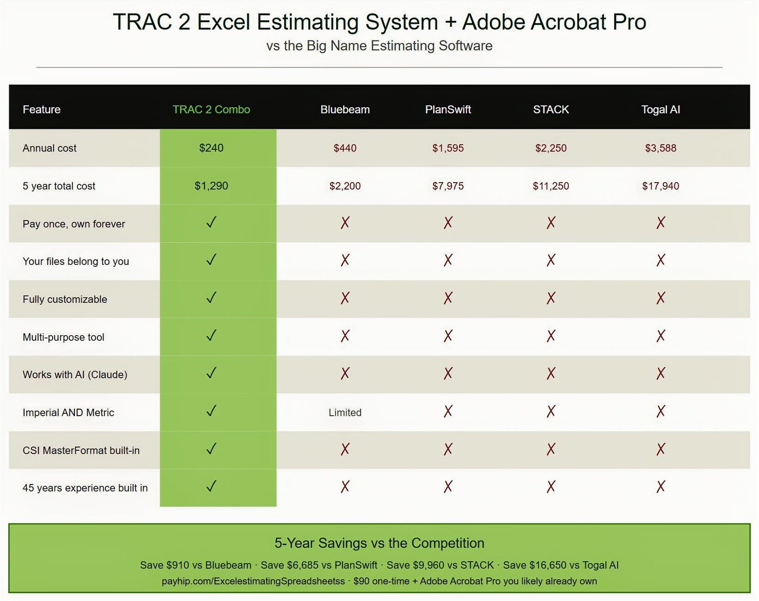 WHY THIS BEATS $1,500-$3,500/YEAR ESTIMATING SOFTWARE