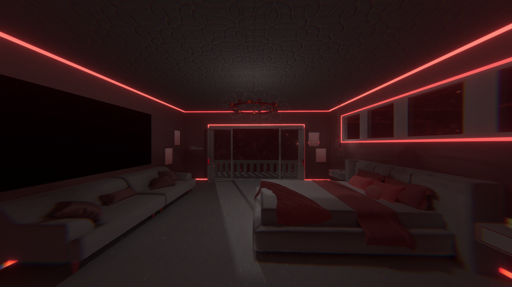 ⟡ Bed, Bedside tables, Hanging lights, Bubble lights, decoration