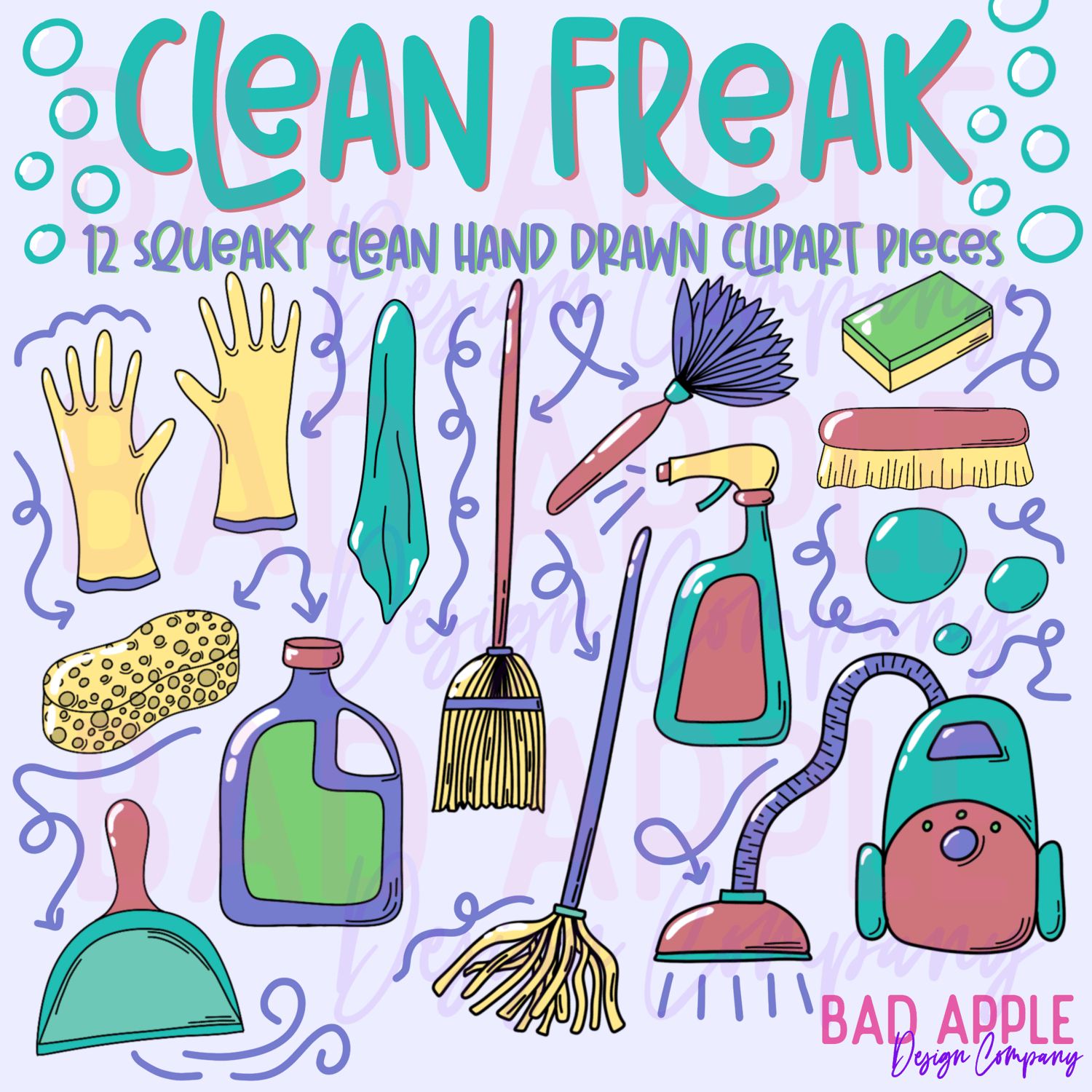 If cleaning isn’t your favorite activity, designing with it might be. This hand-drawn Clean Freak Clipart Set brings all the scrubby, sudsy, squeaky-clean vibes without you having to actually touch a mop.