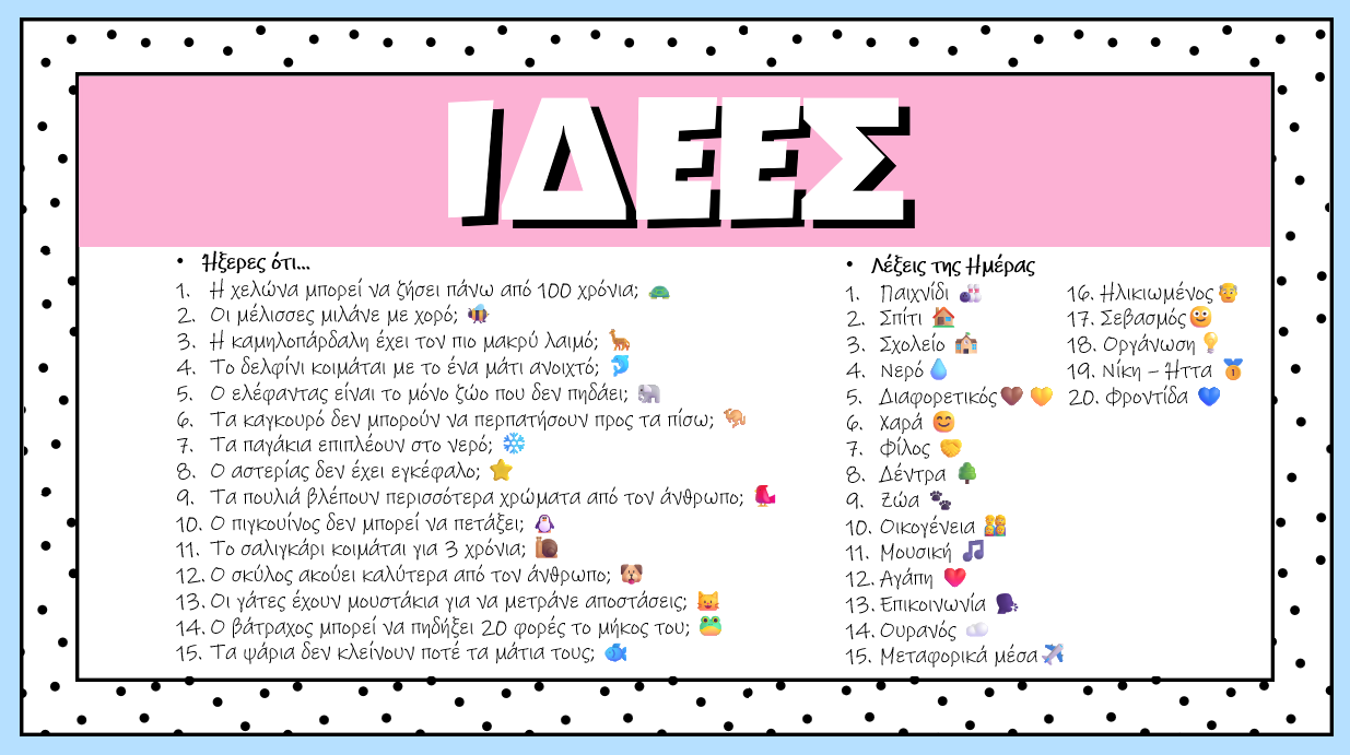- 💡 80+ ιδέες εμπλοκής (συζήτηση, mini-δραστηριότητες, εικονίδια)
