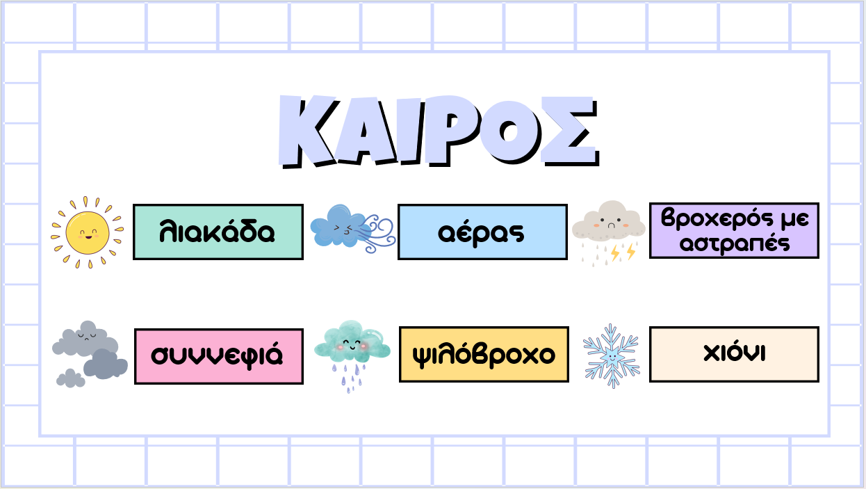 - «Σήμερα είναι…» (μέρα/μήνας/ημερομηνία) με διαδραστικά κουμπιά