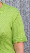 Materials: Worsted weight cotton/silk blend: 565 (660, 735, 810, 900, 1015, 1100, 1210, 1340, 1430, 1525) yards. NOTE: If you plan to increase the length of the BODY or SLEEVES, be sure to purchase extra yarn. Model knit in Cascade Yarns Pima Silk (85% Peruvian pima cotton / 15% silk; 50 grams /109 yards): color #6898 Green Tea.