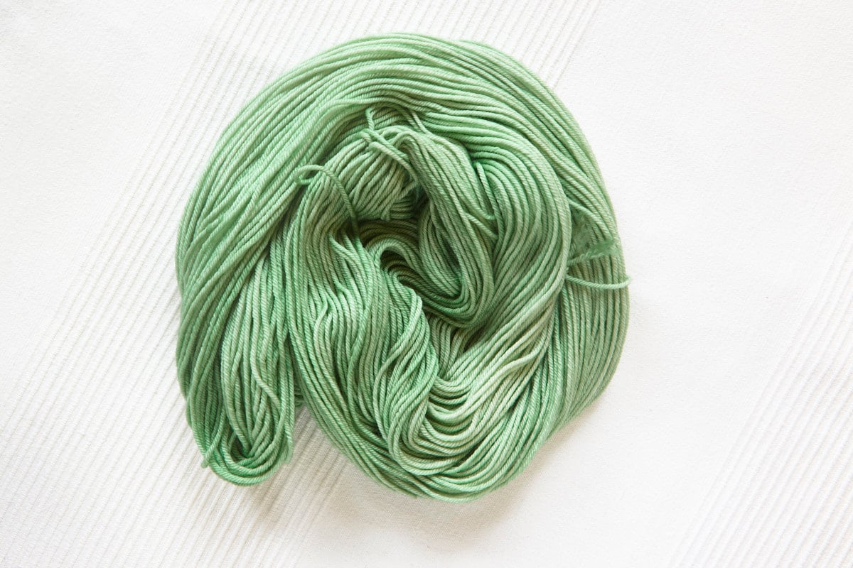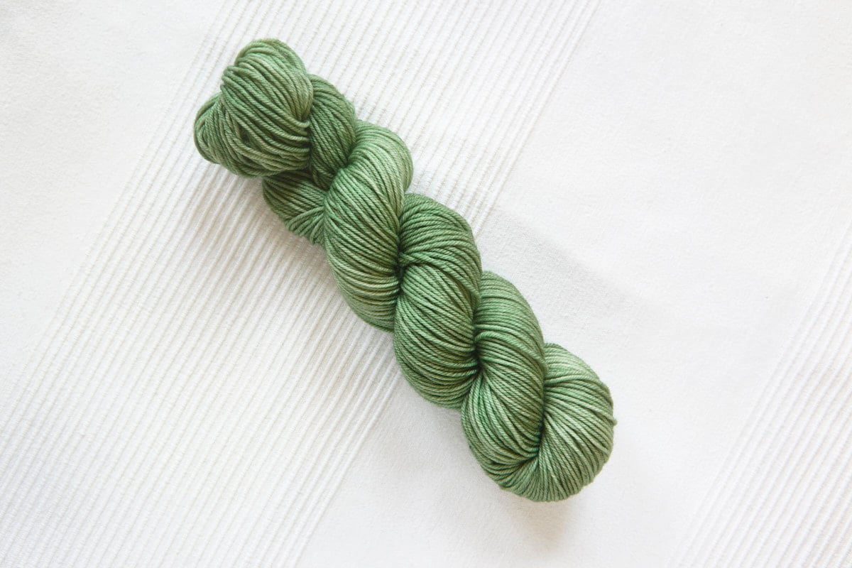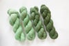 Full-skein set with Frosted Mint: Very light minty green with tonal variation + Misty Meadow: Light meadow green with slight teal undertone and tonal variation + Morning Meadow: Medium-light meadow green with slight teal undertone and tonal variation and + Mossy Sage: Medium mossy green with very slight teal undertone and tonal variation