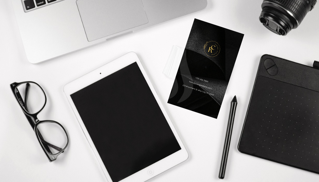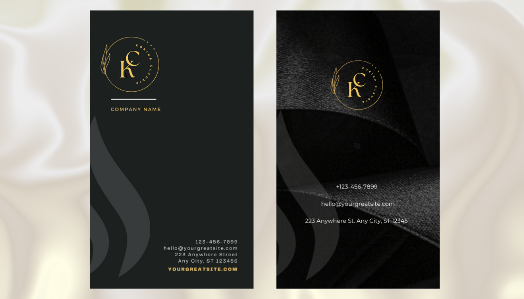 Hash tags> #BusinessCard #MinimalistDesign #GoldAndBlack #ProfessionalLook #Monogram #LuxuriousTexture #PersonalizedDesign #Moderndesign #SophisticatedStyle