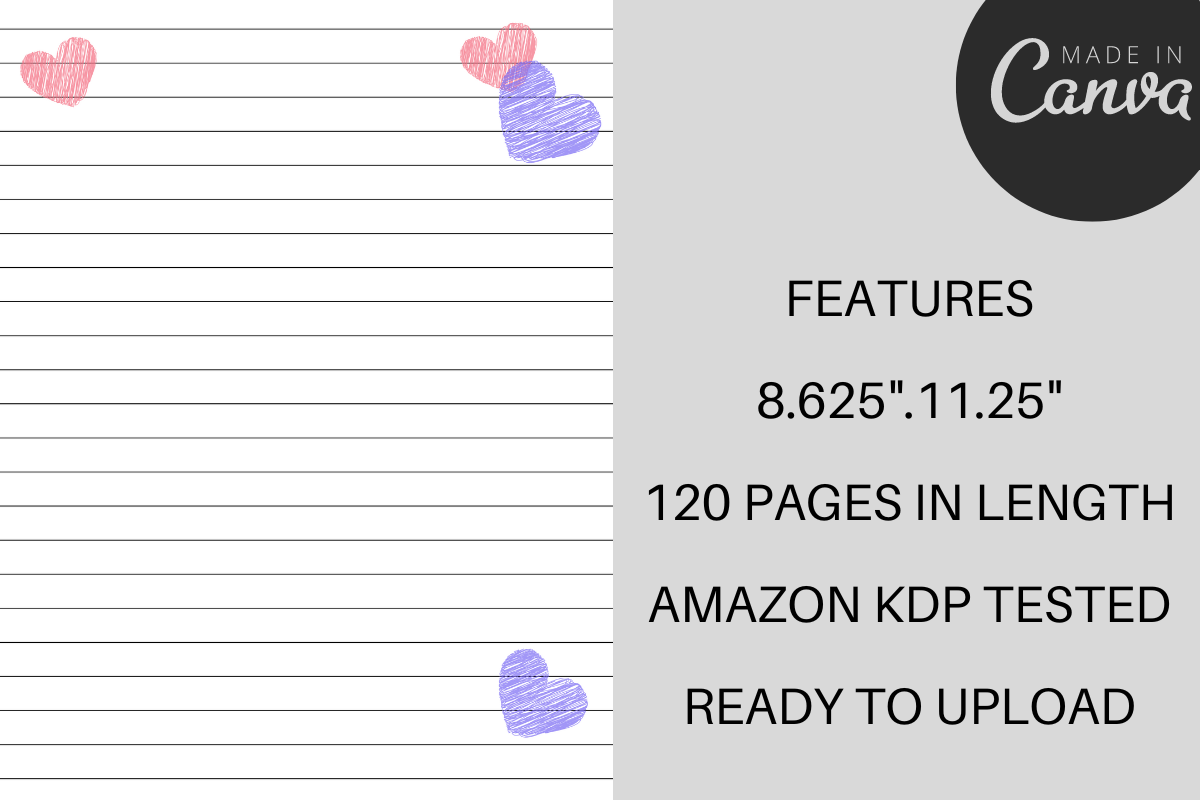 With this interior, you can quickly and easily create a high-quality, professional-looking love themed journal for KDP.