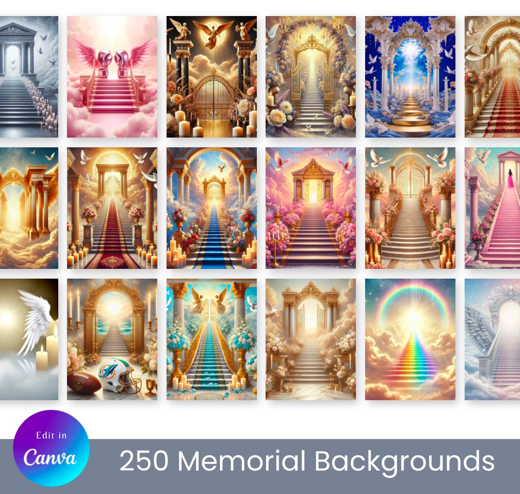 A collection of beautifully designed memorial backgrounds, perfect for honoring loved ones. These customizable files provide a heartfelt touch for tribute designs, keepsakes, or remembrance events.