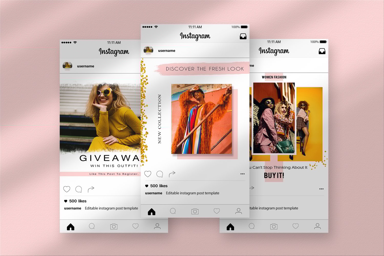 Create eye catching instagram post and story. The gold glitter instagram post is a PSD template for brands, fashion bloggers, store owners, designer and creators to promote and inform their new customers about their products on instagram. Use the premade templates to create instagram templates for your clients. For editing this templates you need Photoshop CS6 or later versions. The file contain 15 fully editable PSD Instagram post template.