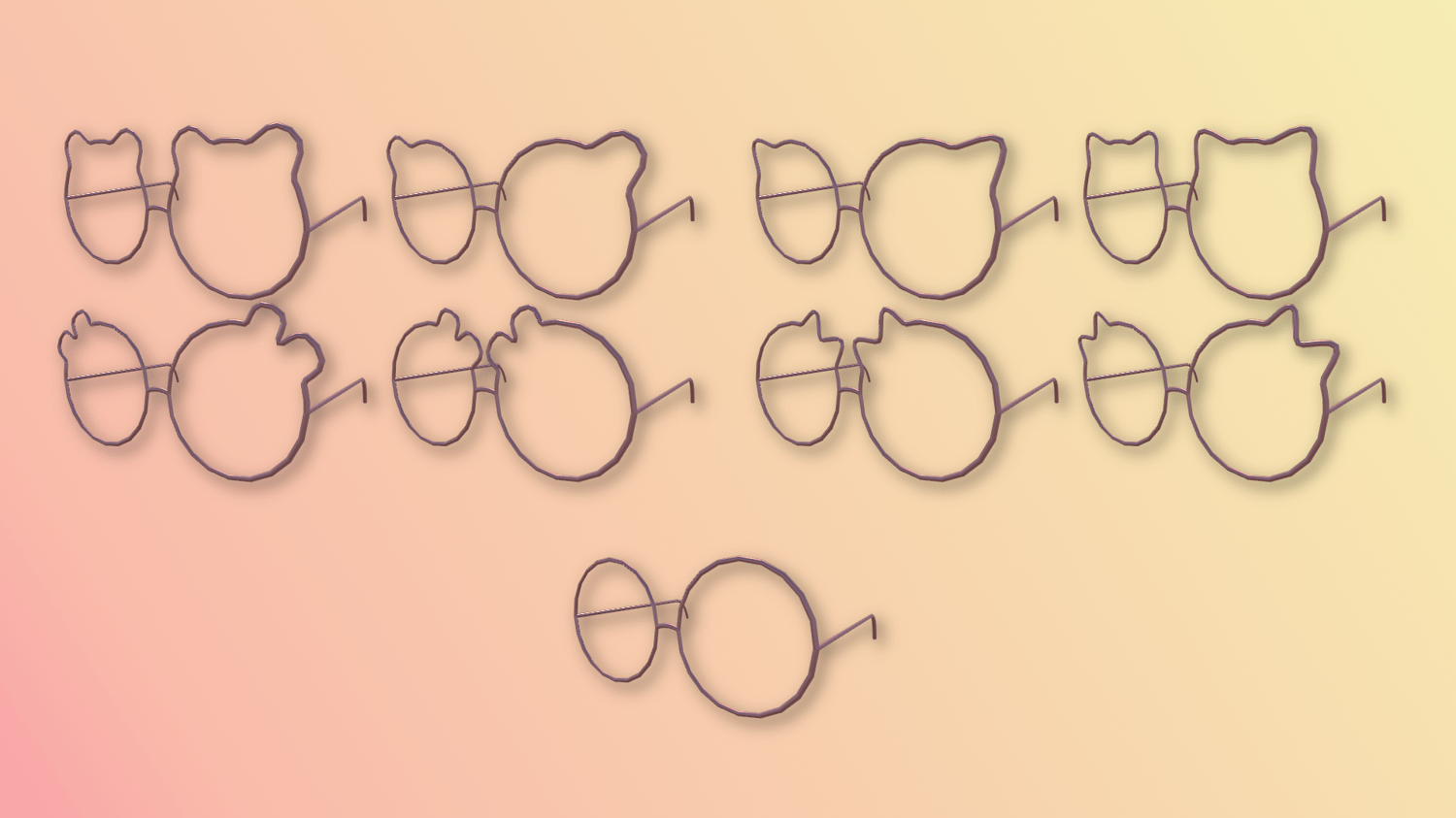 Cute glasses with cat and bunny ears. 9 different shapes (4 bunny + 4 cat + 1 blank).