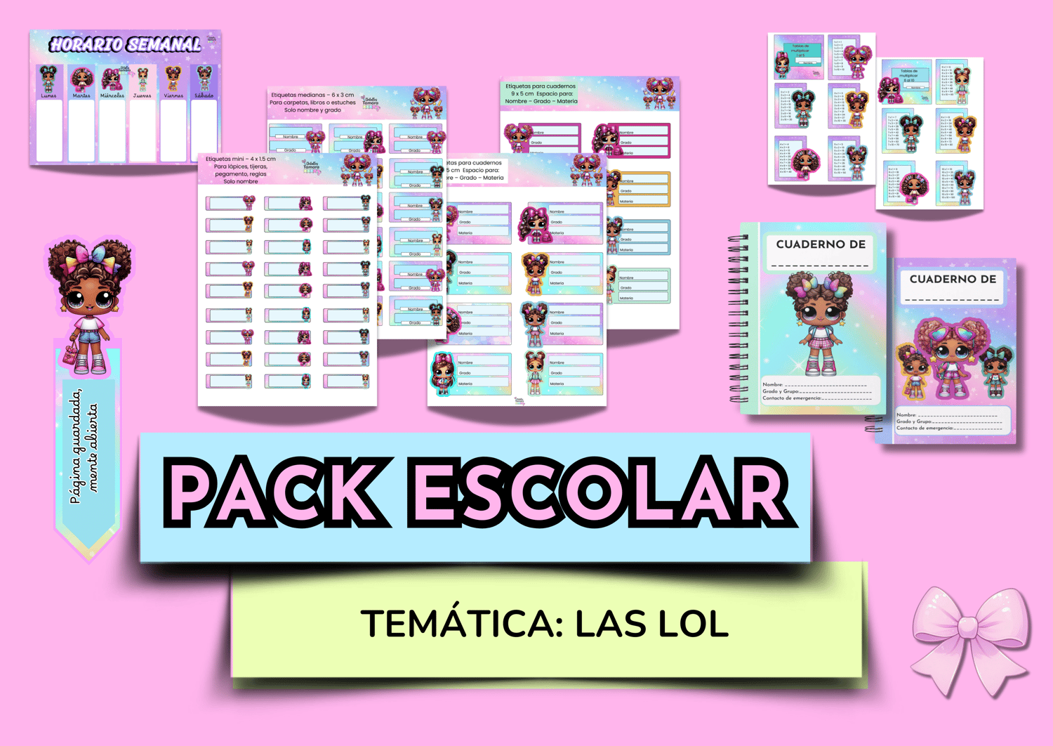 Pack escolar imprimible temática Las LOL Surprise- No personalizable