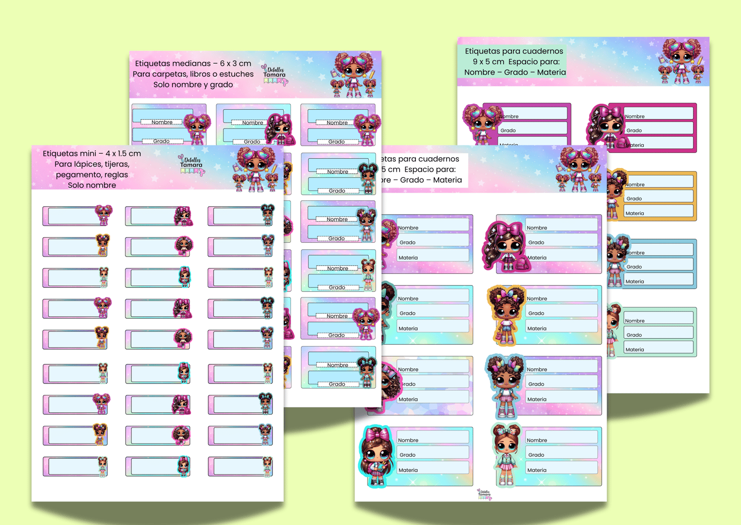 Convierte el regreso a clases en una experiencia llena de color y moda con este kit de etiquetas escolares inspirado en las muñecas LOL Surprise. Ideal para mamás prácticas que saben que los detalles marcan la diferencia y quieren que todo esté bien identificado y con onda fashion.
