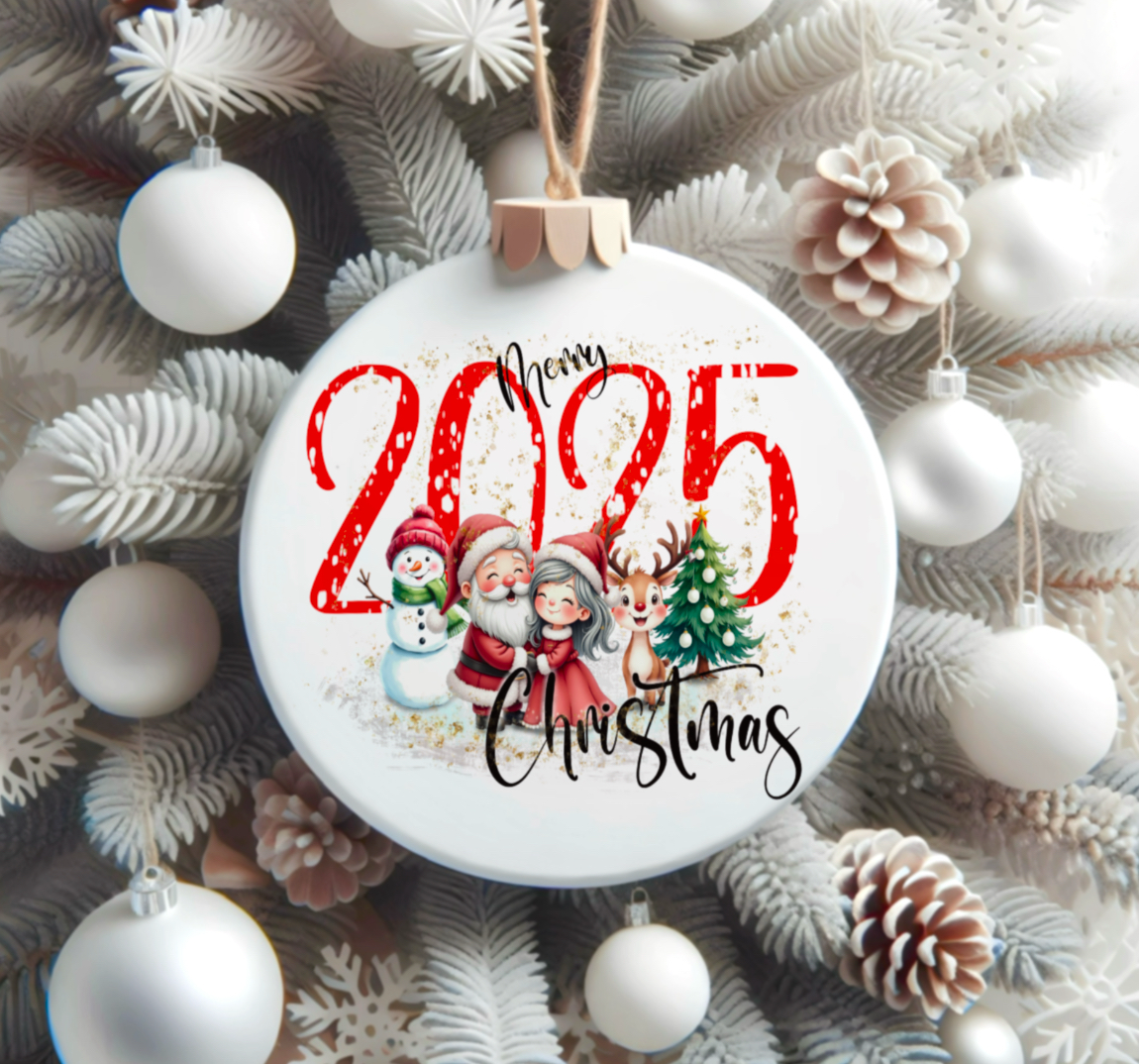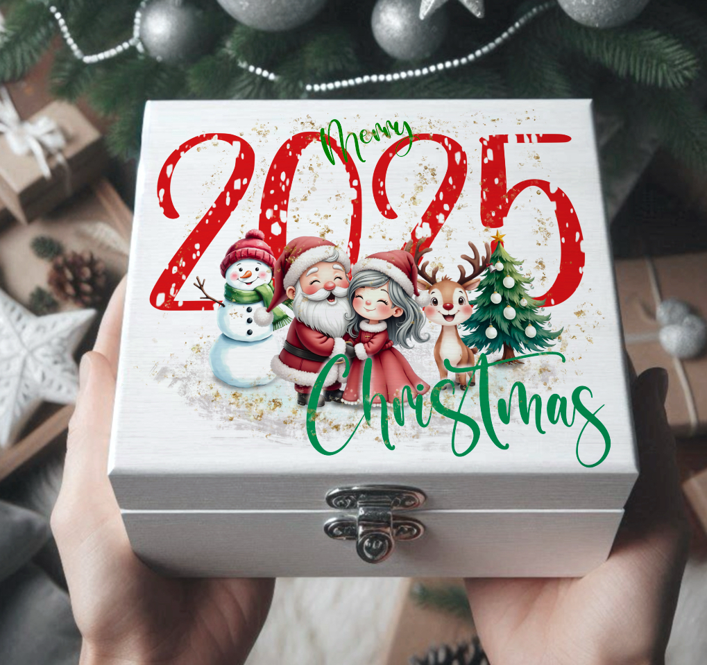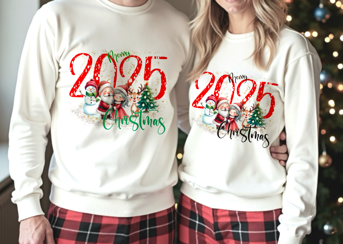 Merry Christmas 2025, 2 designs, one with black writing for white products and one with green for DTF/UVDTF on darker products.