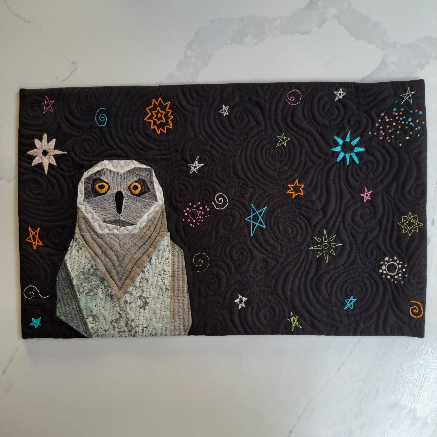Sew up your own startled short-eared owl! This pattern measures 16”x10” and is all straight lines, and the eyes are absolutely tiny. It is normal foundation paper piecing and I have included as many keys as I can and I think if you have done one of my patterns before you will be able to tackle this no problem. Please reach out before you are tempted to leave a negative review, I am here to help! The large amount of negative space to the right of the owl is one piece of fabric, and therefore it can be left off if you require a smaller block. There are no instructions included on how to actually do FPP, but there are several keys and a colouring page included. I finished my mini quilt as a wall hanging as an Aurifil Artisan with a lot of free-motion quilting and hand embroidery, inspired by the children’s book ‘Wow! Said The Owl’ by Tim Hopgood. Please share your pics with me, I love to see!