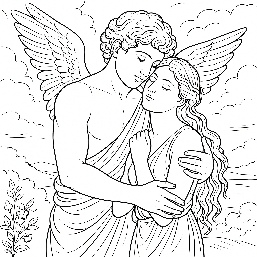 ✨ Today, the myth remains one of the most beautiful love stories of all time, inspiring art, literature, music, and, of course, coloring books like this! 🎨