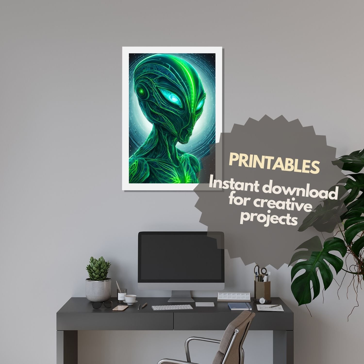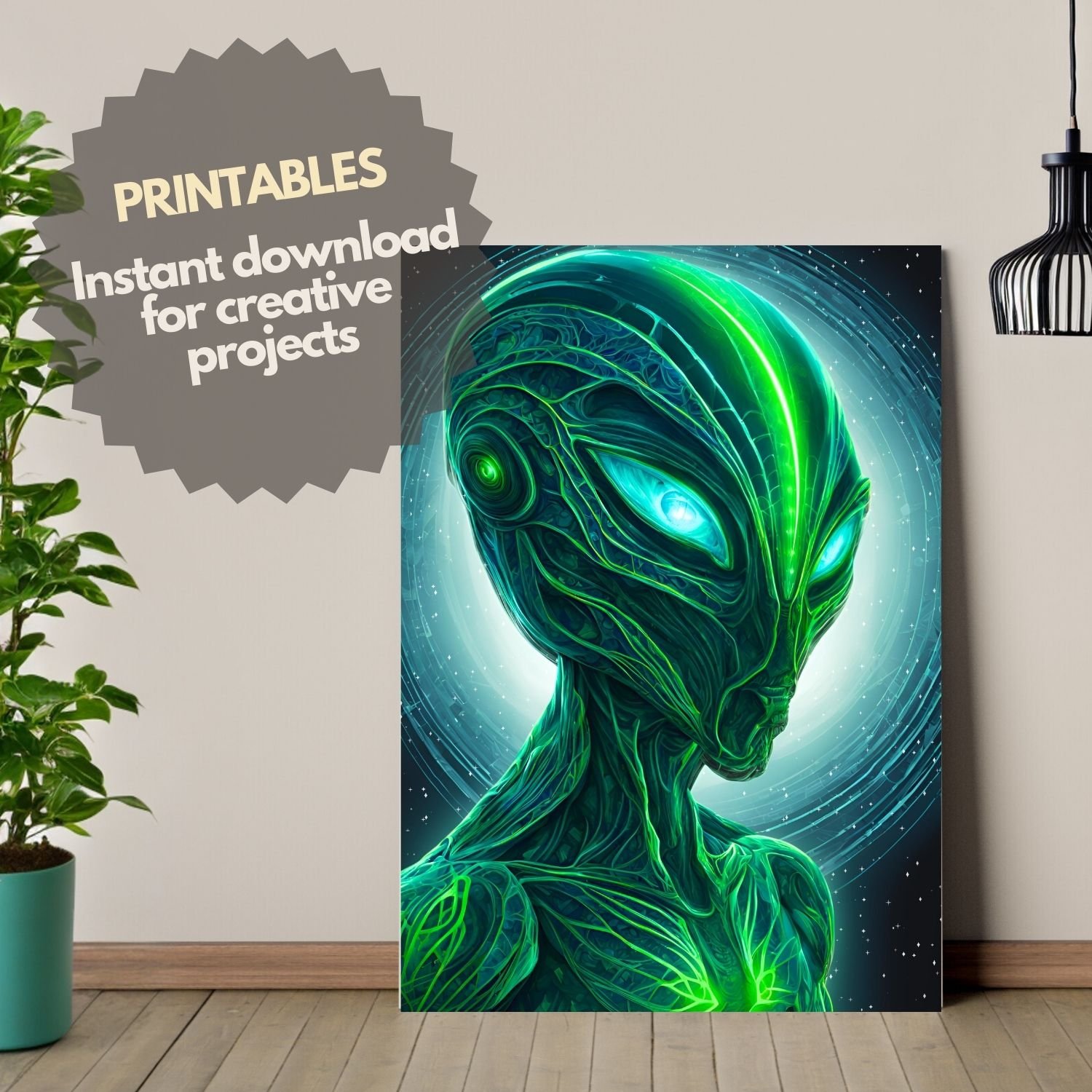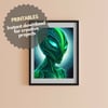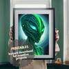 Green Alien portrait poster printable teenager decor christmas gifts wall art space monster