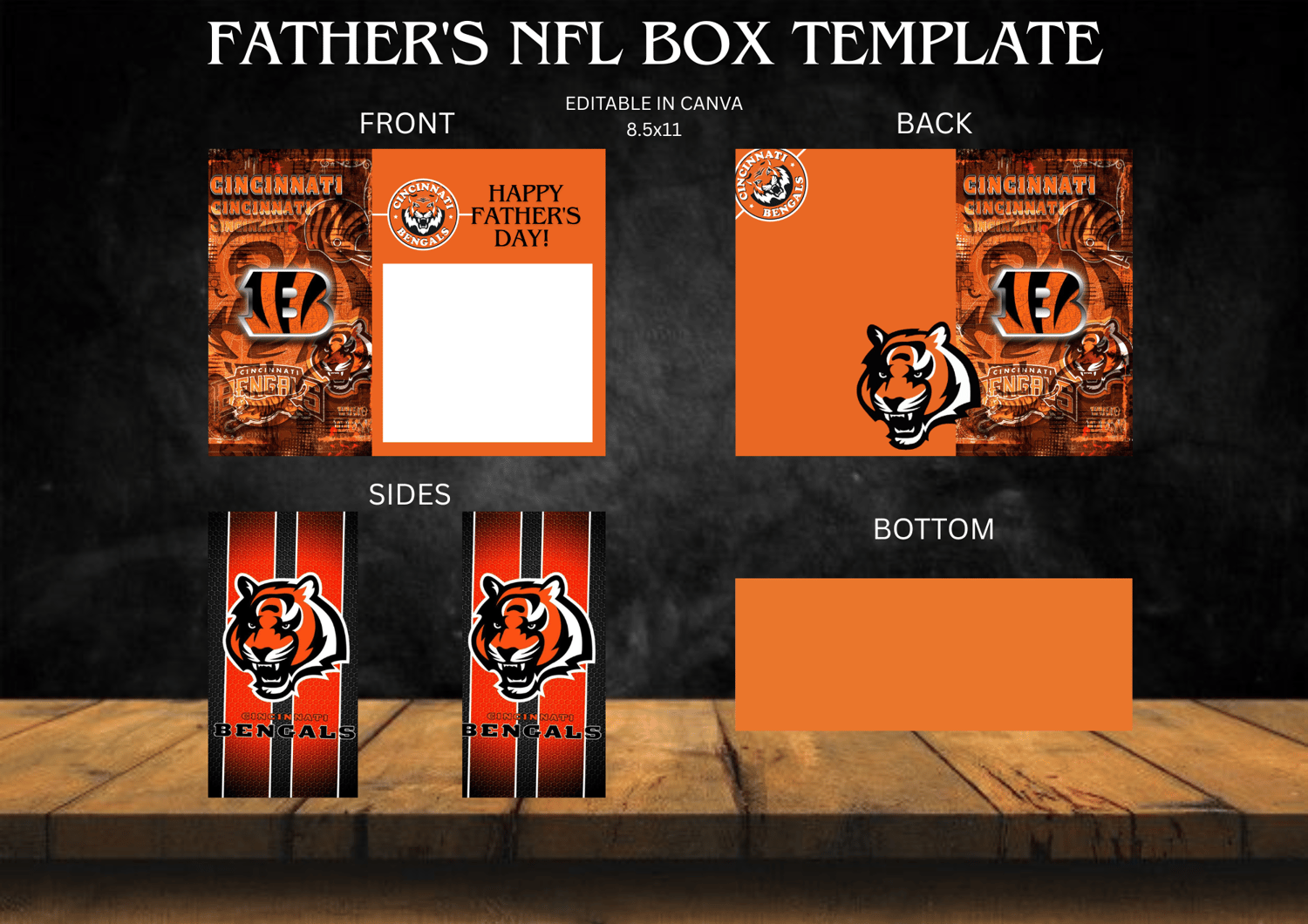 This Father's Day Sport-Inspired Gift Box Template is designed for dads who love the thrill of the game. Featuring dynamic sports like football, this template brings energy and excitement to your gift packaging. With bold colors, sporty patterns, and playful typography, it's perfect for wrapping up his favorite treats,alcohols, bath&bodyworks, or personalized gifts. Easy to print, cut, and assemble at home—making your gift look like a real MVP.