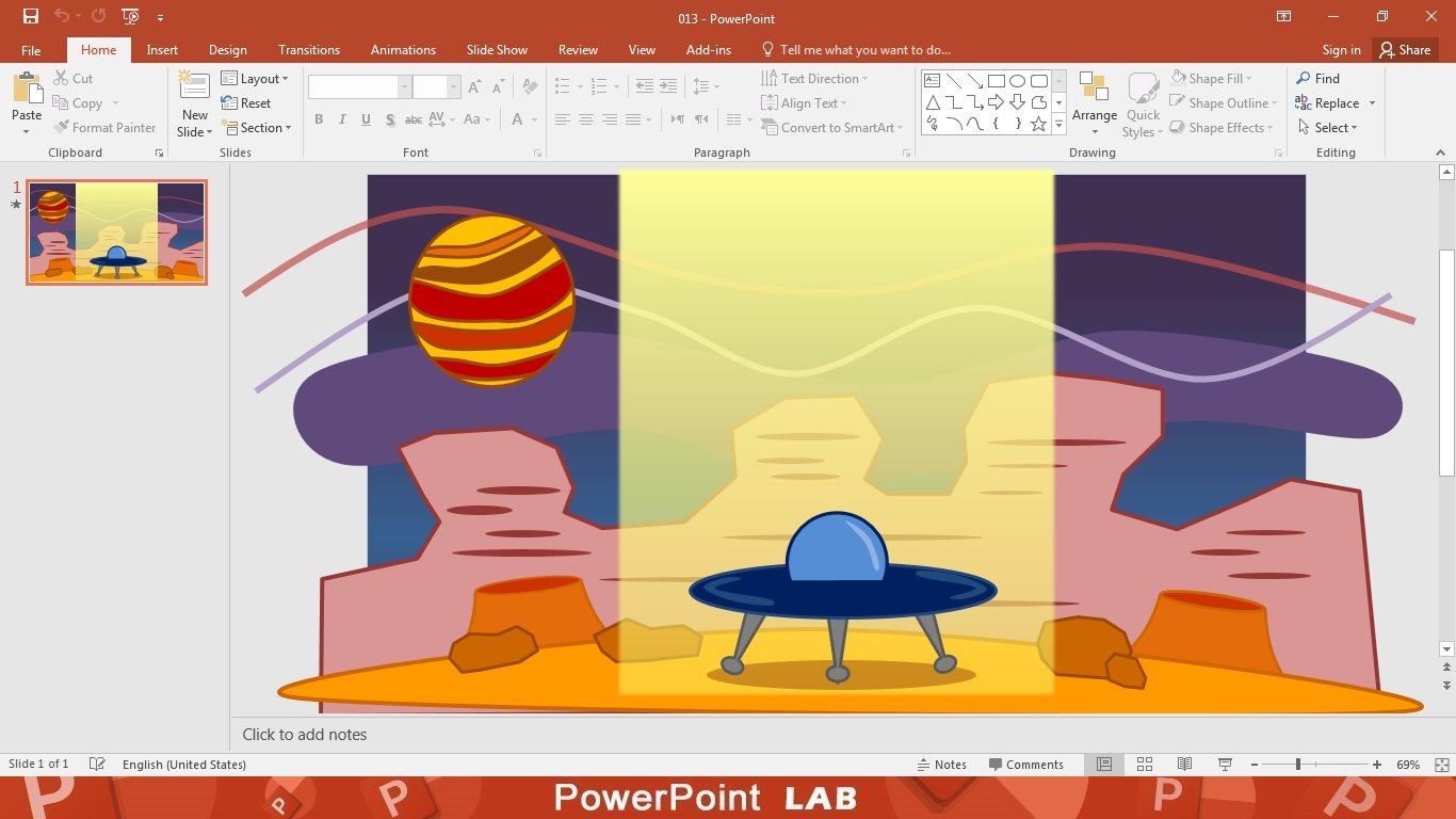 Creative unique digital art landscape, UFO Landing on PowerPoint, Created with meticulous attention to detail and a blend of vibrant colors.