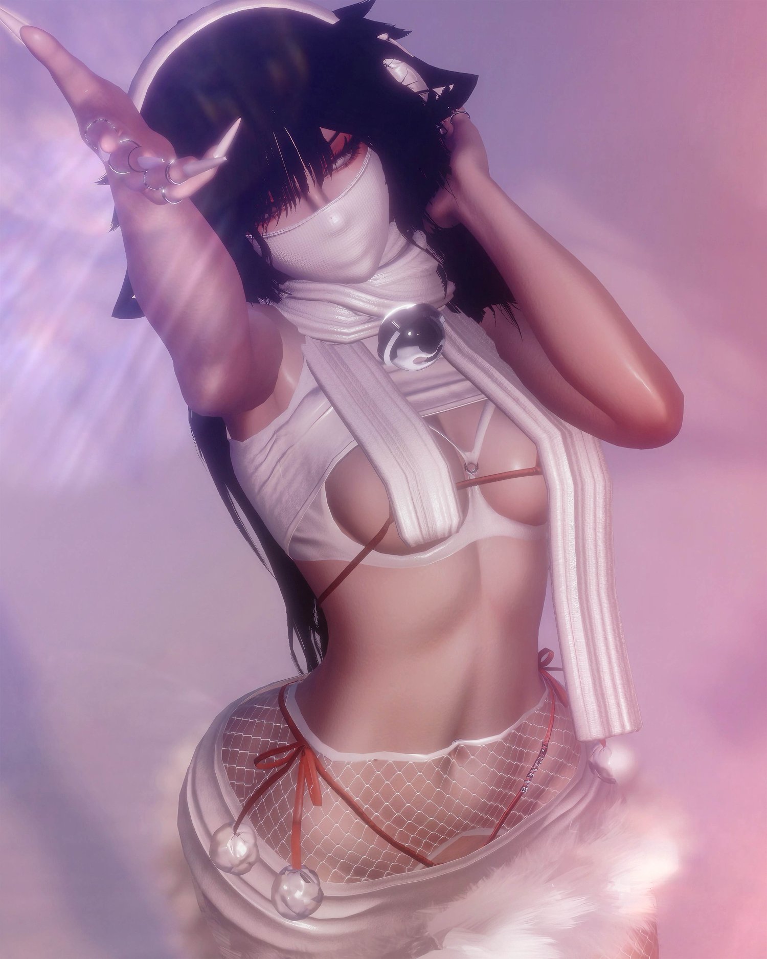 Stockings, Arm Warmers, Earmuffs, Ski Mask, Harness, Collar, Choker, Rings, Belly Piercing, Mask, Lights, Scarf, Ears, Snowboard.