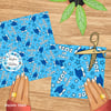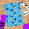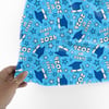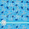 Grad caps, diplomas, tassels and stars in blue.