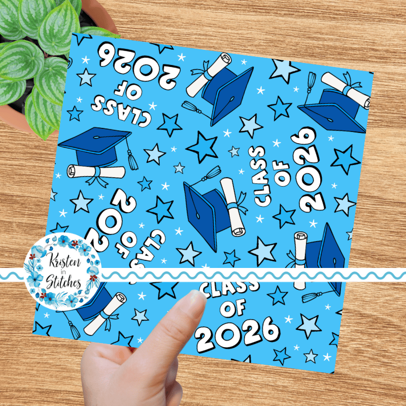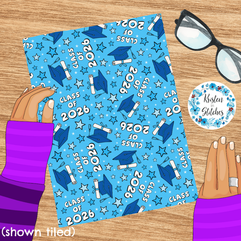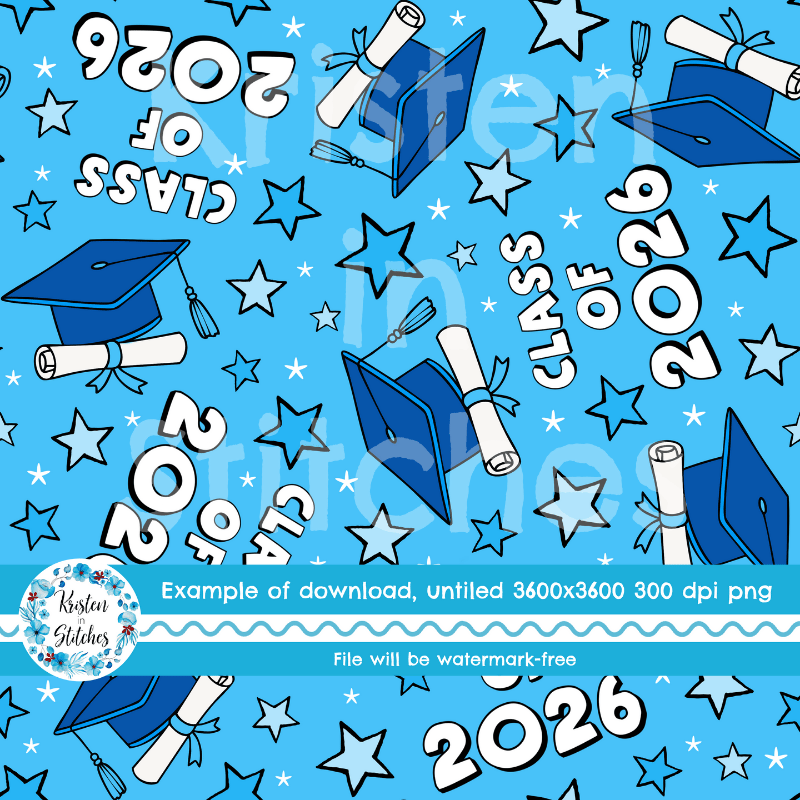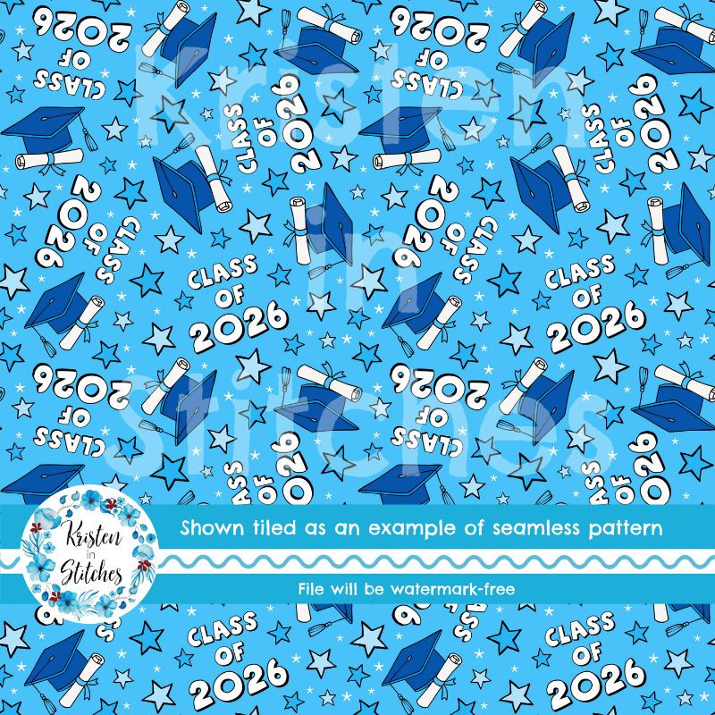 Class of 2026 Graduation Grad Caps and Tassels Seamless Pattern Blue