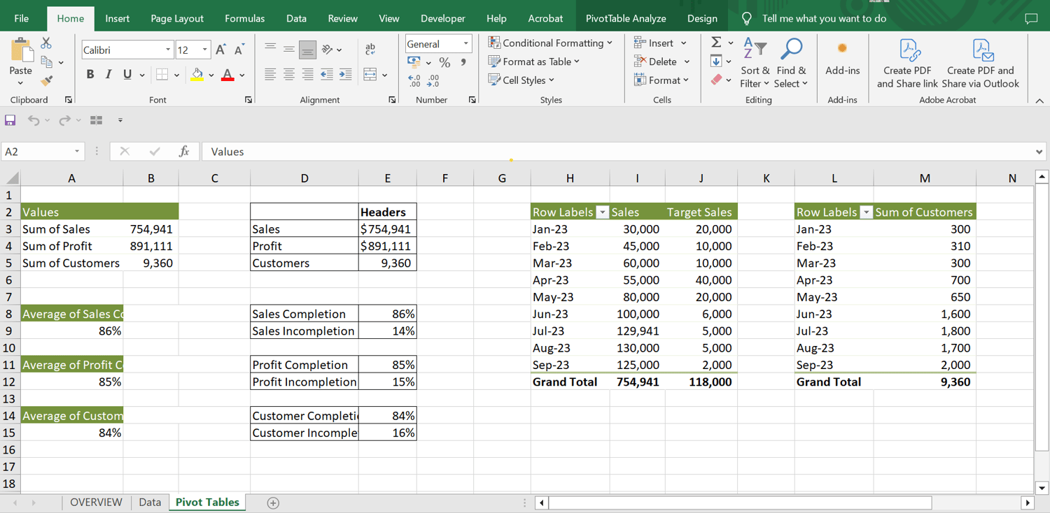 Excel file with Pivot Tables