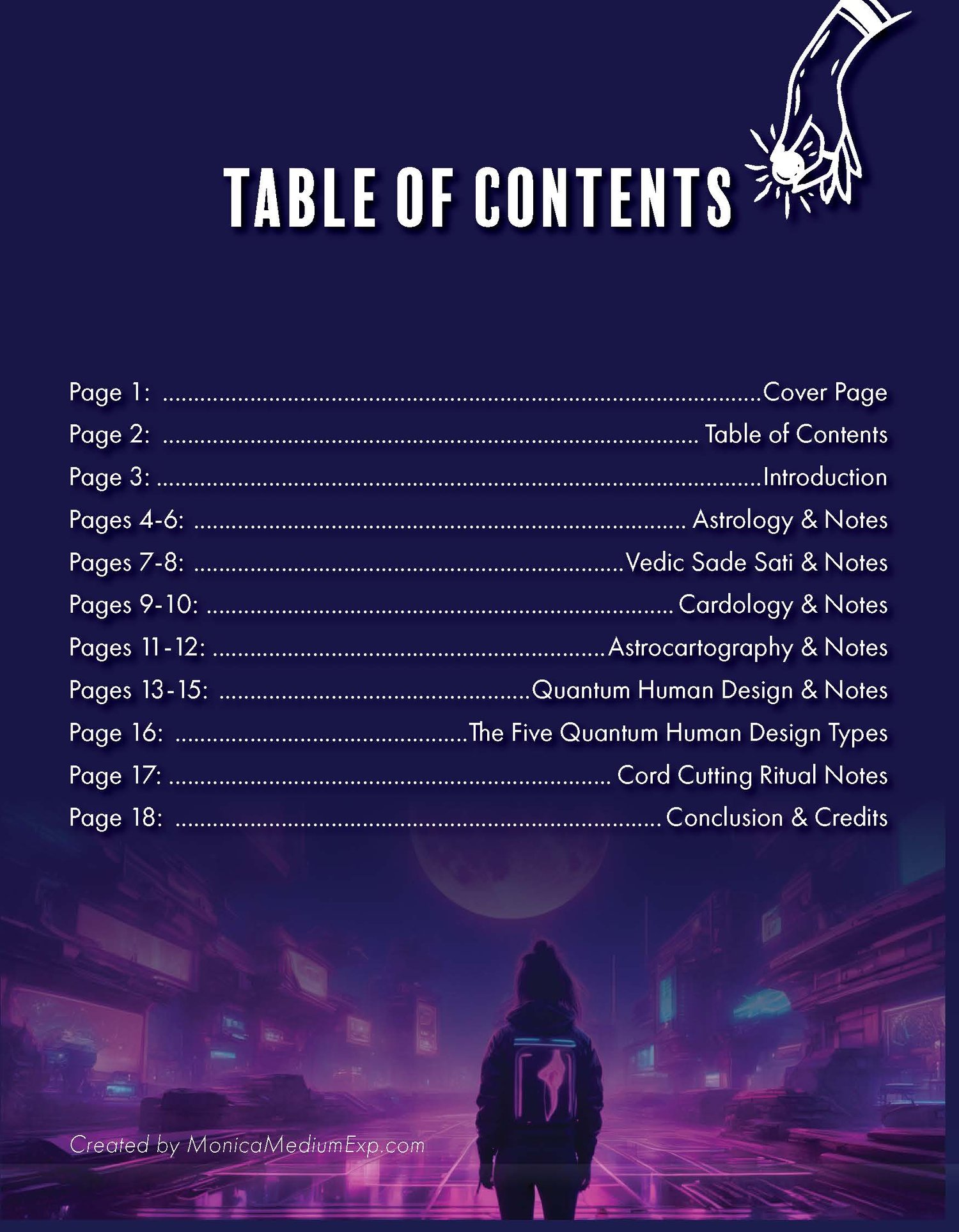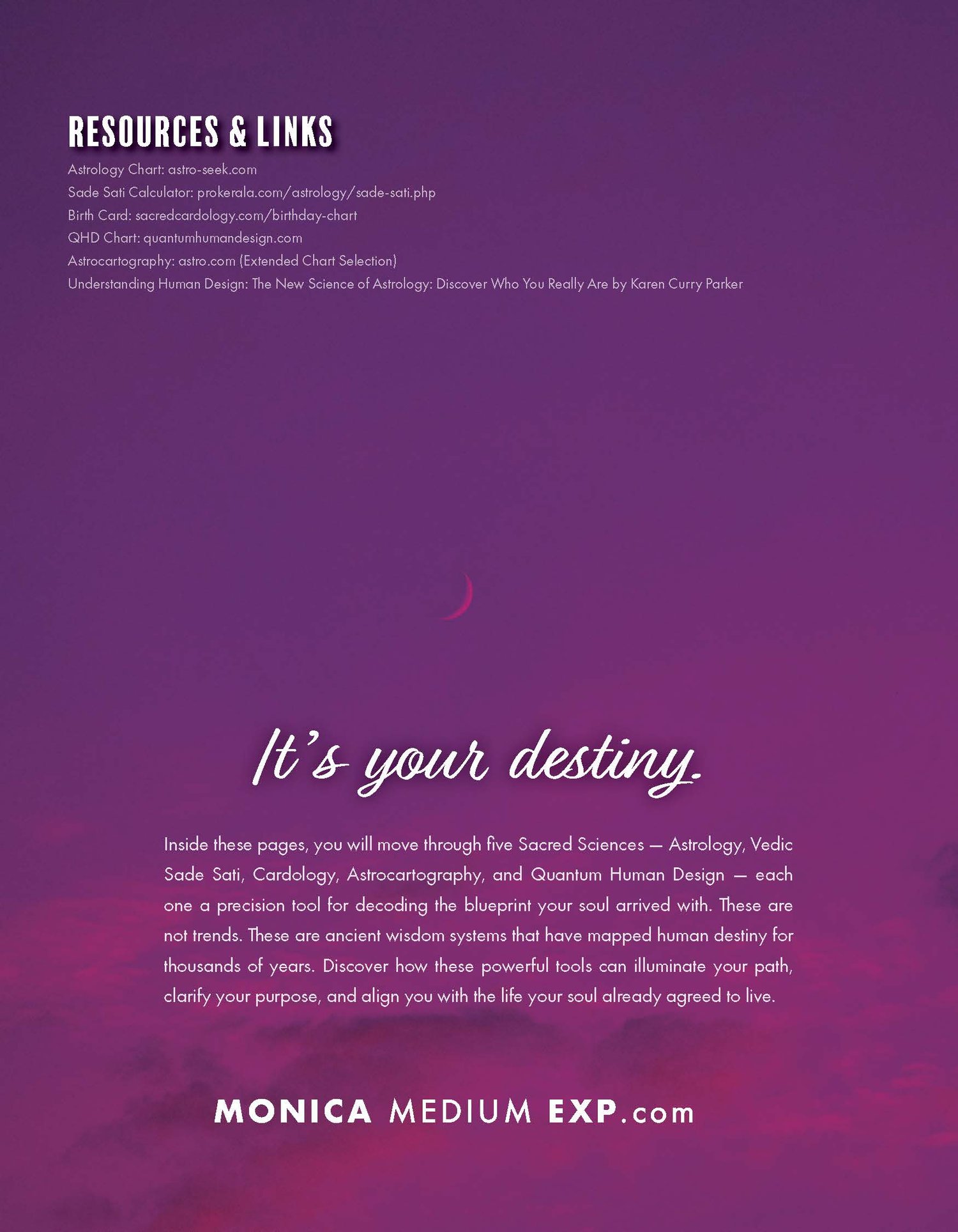 Inside this 19-page guided digital workbook, you will move through five of the most powerful Sacred Sciences available to humanity — Astrology, Vedic Sade Sati, Cardology, Astrocartography, and Quantum Human Design — each one a precision tool for decoding the path your soul arrived here to walk.