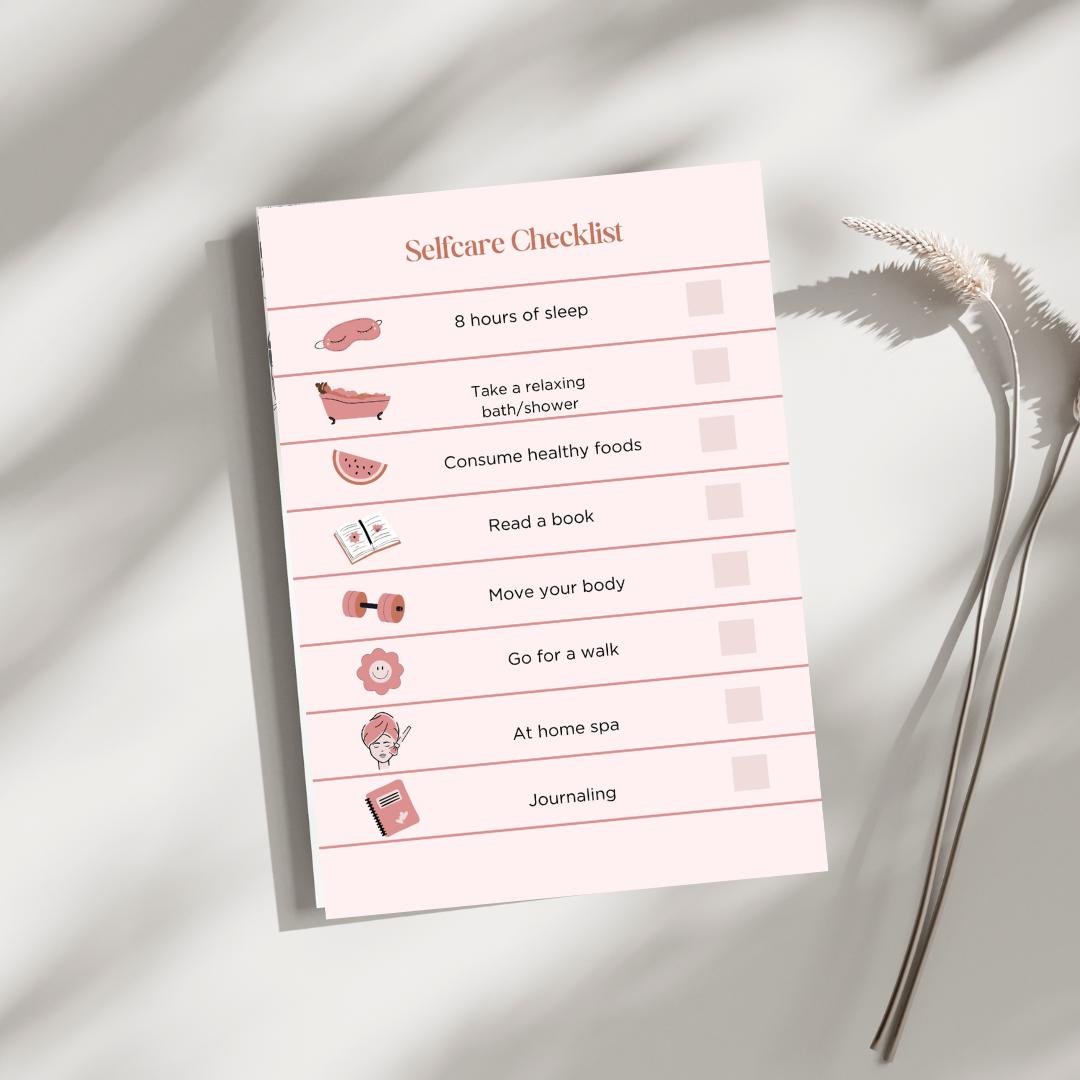 ✔ A structured checklist to track essential self-care activities