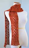 I have always been fascinated by the patterns in nature that look woven, like palm fronds and pinecone scales. This pattern came about because I was looking for something a little more interesting than a simple chevron, and a little more challenging than typical tiled laces, and so I did a little tweaking to a published stitch to come up with something that looks woven but flowing at the same time. Like the organic shapes and patterns in palms of the family Arecales, from which this scarf takes its name, this scarf is beautiful and functional, interesting but not too out of this world. The stitch pattern is both charted and written.