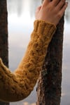 The pattern is written with both metric and US terminology. Both written and charted instructions are given for all cable patterns.