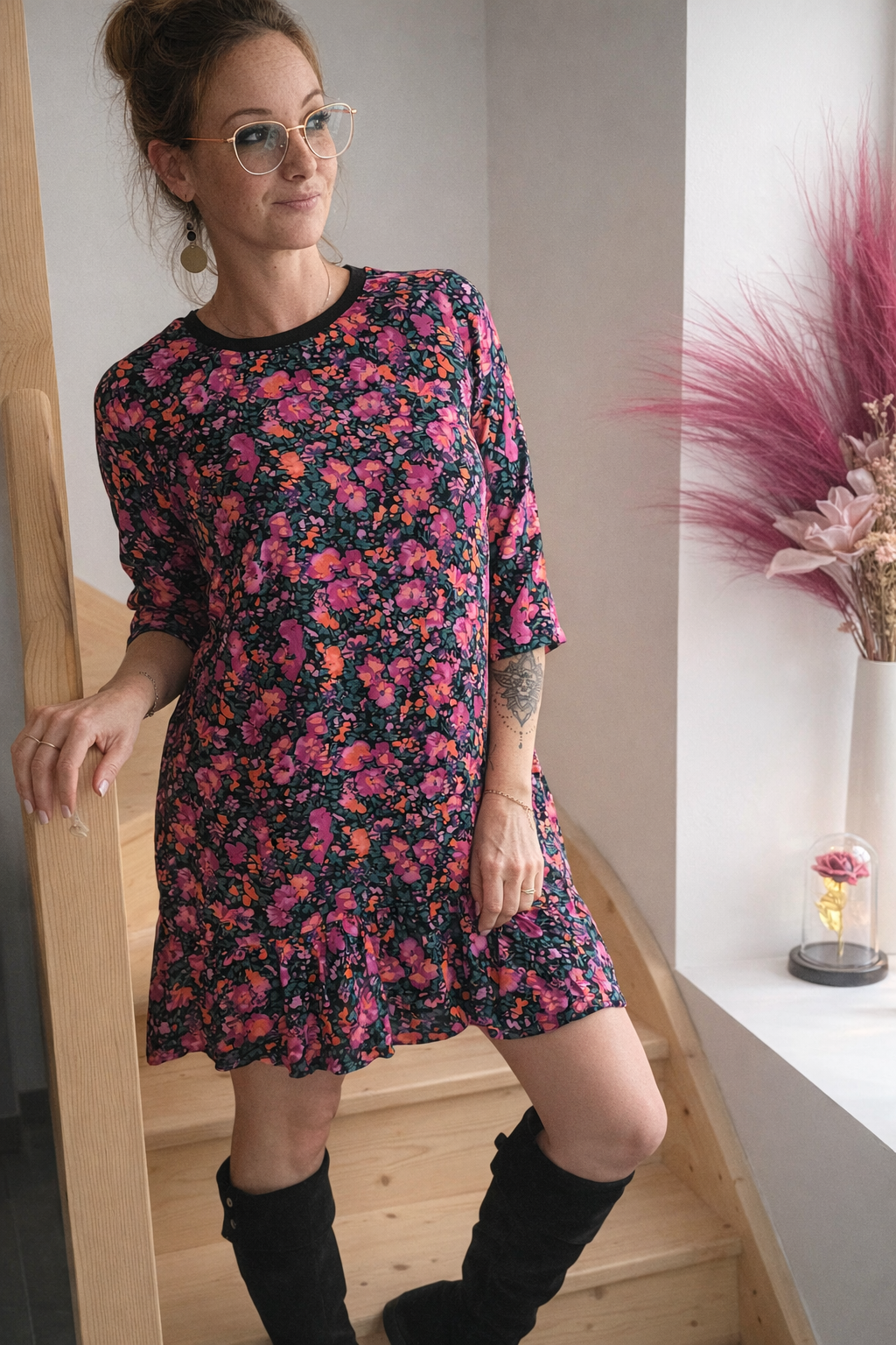 🌹 Robe fleurie fond noir – Élégance et féminité