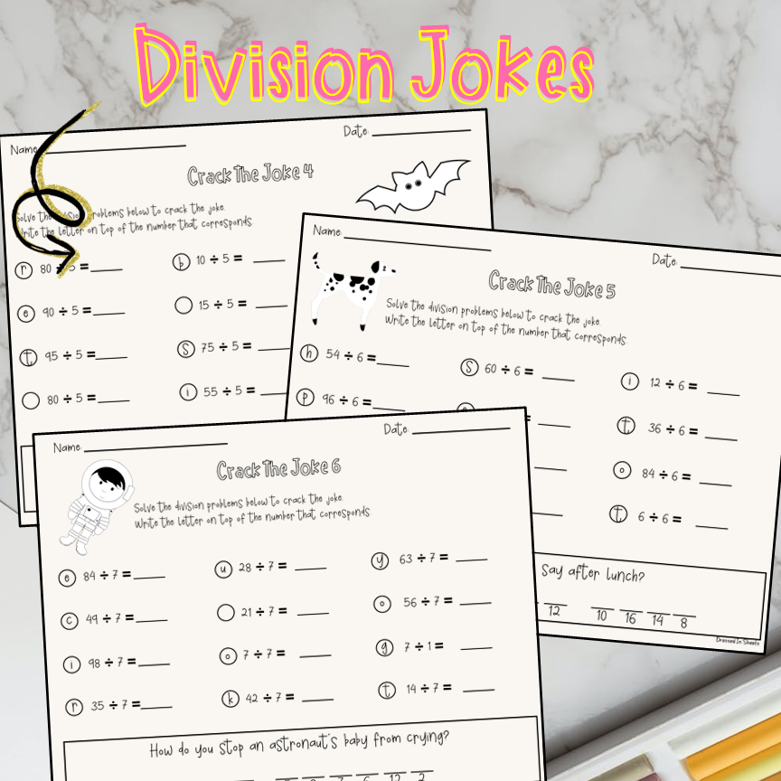 Engage your students in critical thinking by presenting them with these fun filled worksheets. They will have to divide to find the answer to the joke. Can be used for fast finishers, early morning routines, test prep and more. Sheets will have division by 2, 3, 4, 5, 6, 7, 8 and two randomized.